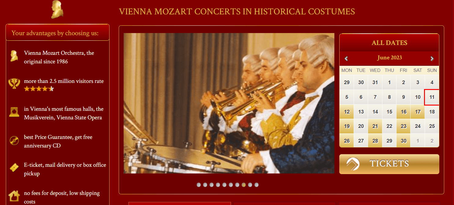 New! Exclusive 10% discount on all tickets and packages for the Mozart show when booking directly through the orchestra’s official website! (The discount appears when you reach the payment page for the tickets).