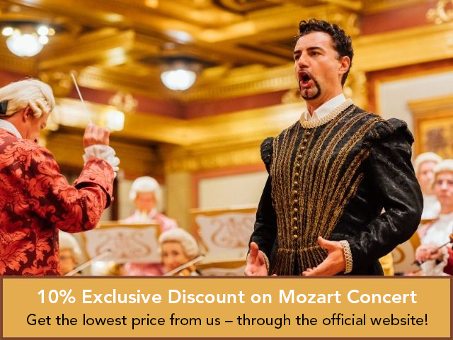 Through “Austria for Travelers” you will receive an exclusive 10% discount on the ticket price, by booking directly through the official website of the Vienna Mozart Orchestra. Click here for more details and to book tickets on the official orchestra website with a 10% discount. Please note: The discount appears once you reach the payment page.